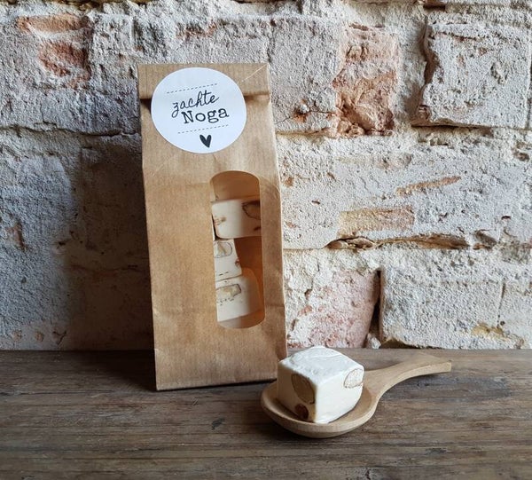 Geniet van de onweerstaanbare smaak van zachte nogablokjes met amandelen. Deze heerlijke traktatie combineert de romige textuur van zachte nougat met de knapperige bite van zorgvuldig geselecteerde amandelen. Perfect als tussendoortje, bij de thee of om cadeau te geven.