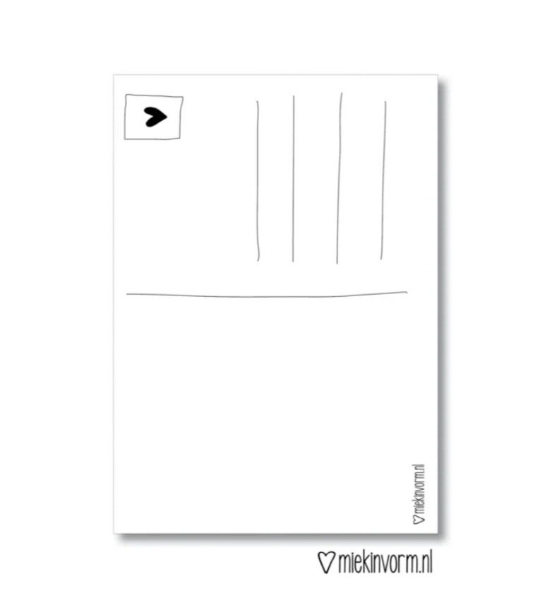 De kaart is geprint op stevig kaartpapier met een ruwe matte uitstraling. Op de achterzijde is ruimte voor een adres en een persoonlijke boodschap.