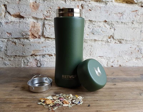 Ideaal voor onderweg, op het werk of gewoon voor thuis is deze mooi vormgegeven design thermosfles van Retulp waar je koffie, thee, smoothies en andere dranken in mee kunt nemen. De thermosbeker is dubbelwandig waardoor thee en koffie maar liefst 6 uur warm blijven en koude dranken maar liefst 8 uur koud. Je krijgt een handig filter bij de fles, om zo water met fruit of losse thee te kunnen drinken.