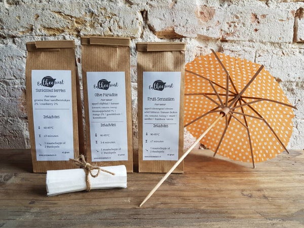 We hebben drie heerlijke en zorgvuldig samengestelde zomerthee-pakketten voor je gemaakt, incl. gratis handige theefilterzakjes. Deze pakketten zijn perfect om cadeau te geven en iemand echt te verrassen of om zelf lekker van te genieten tijdens de zomer periode.