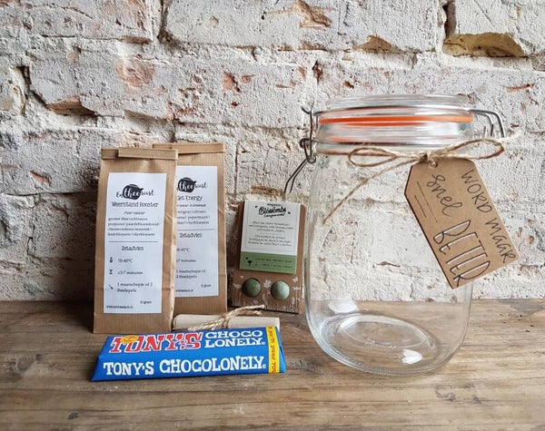Compleet cadeau in een weckpot. Verkrijgbaar in drie varianten:
